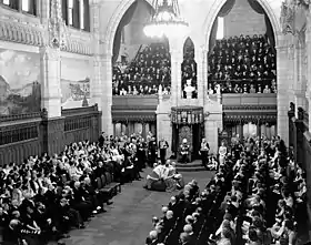 Тронная речь — обычная для ряда монархий мира процедура произнесения монархом (или его представителем) специально подготовленного обращения перед собравшимся в полном составе парламентом, чтобы представить программу правительства на предстоящий год. Текст речи подготавливается партией, имеющей большинство в нижней палате парламента[4].