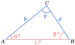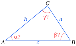 Стандартным методом решения задачи является использование нескольких фундаментальных соотношений, выполняющихся для всех плоских треугольников[4]: