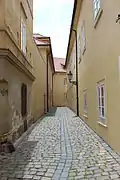 Известна с 14 века под названием Славиччина (чеш. Sláviččina). Первоначально улица имела форму арки, которая соединяла Гаштальскую площадь с улицей Градебни, после пражской перестройки в конце 19 века её форма стала неправильной[4].