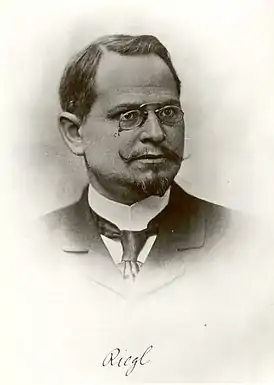 Алоиз Ригль (нем. Alois Riegl; 14 января 1858, Линц — 17 июня 1905, Вена) — австрийский историк искусства, представитель венской школы искусствознания (Wiener Schule der Kunstgeschichtе). Создатель оригинальной формальной теории исторического развития художественного стиля. Член Австрийской академии наук. Выступал против недооценки достижений предыдущих эпох, а также за признание истории искусства в качестве академической науки.