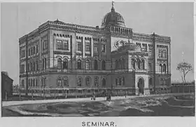 Трёхэтажное здание семинарии было выстроено в 1877—1879 годах по проекту архитектора Генриха Шеля. Семинарский храм был освящён в честь Покрова Пресвятой Богородицы.