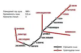После сдачи первого участка Первая линия должна была быть продлена на восток до Юглы и на запад до Иманты.