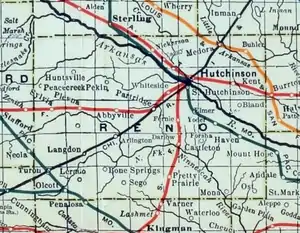 В 1887 году «Железная дорога Чикаго, Канзаса и Небраски» протянула магистраль[2] от города Херингтон (Herington) к городу Пратт (Pratt). Линия железной дороги прошла через города: Херингтон, Рамона, Тампа, Дюрэм (Durham), Waldeck, Кэнтон, Galva, Макферсон, Groveland, Инмэн, Medora, Хатчинсон, Уайтсайд, Партридж, Арлингтон, Лэнгдон, Turon, Престон, Natrona и Пратт. В 1888 году эта линия была продлена до города Ли́берал, и далее ушла за пределы штата до Тукумкэри (Нью-Мексико) и до Эль-Пасо (Техас). Эта линия была названа «ООО Золотой Штат» (Golden State Limited).