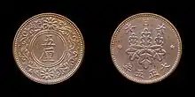 В 1916 году (5 году эры Тайсё) начата чеканка бронзовых монет в 5 ринов. Их чеканка была прекращена в 1919 году (в 8 году эры Тайсё)[3].
