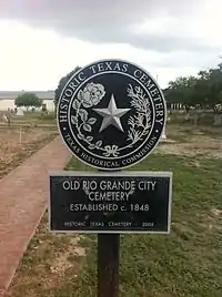 Церковь Санта-Круз, памятная табличка с историей города и табличка старого кладбища Рио-Гранде-Сити | ||||