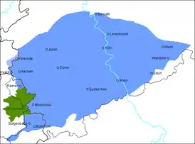 Северной границей рипуарской диалектной зоны является линия Бенрата. На юге эта область доходит до Зигена, а на западе — до Эйпена. Южный её рубеж сравнительно точно совпадает с границей федеральной земли Северный Рейн-Вестфалия к югу от Бад-Хоннефа и Хеннефа. Кроме того, рипуарские диалекты распространены в двух небольших областях на севере Рейнланд-Пфальц: в регионе Бад-Нойенар-Арвайлер и в регионе Линц (Рейн). Здесь на правом берегу Рейна граница проходит между Лойбсдорфом-на-Рейне и Бад-Хённингеном, а на левом берегу, пройдя между Бад-Брайзигом и Бролем, продолжается под названием Винкстбахской линии (по названию притока Рейна). Здесь границы диалектных зон определяются принадлежностью в Кёльнскому курфюршеству. Кроме того, рипуарские диалекты распространены на севере немецкоговорящей части Бельгии (с 1919 года) и на юго-западной окраине лимбургского региона в Нидерландах.