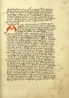 А — Аулендорфский кодекс из библиотеки графа Густава цу Кенигсегг (ныне в Нью-Йоркской публичной библиотеке), до 1460 г.