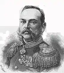 | Награды и премии | Орден Святой Анны 4-й ст. (1854), Орден Святой Анны 3-й ст. (1854), Орден Святого Станислава 3-й ст. (1857), Орден Святой Анны 2-й ст. (1866), Орден Святого Владимира 4-й ст. (1867), Орден Святого Владимира 3-й ст. (1875), Орден Святого Георгия 3-й ст. (1877), Орден Святого Станислава 1-й ст. (1878), Орден Святой Анны 1-й ст. (1880), Орден Святого Владимира 2-й ст. (1887), Орден Белого орла (1892), Орден Красного орла 2-й ст. (Пруссия). |