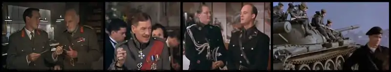 Ланкастеры носят традиционную британскую военную форму. Убитый Ричардом Эдуард, принц Уэльский — собирательный образ молодых аристократов, воспитанных в Итоне и погибших на Сомме[14]. Ричард III на «балу победителей» одет в серо-зелёный мундир германского образца, а в сцене соблазнения леди Анны носит форму, похожую на британскую. Усики и причёска Ричарда напоминают о Гитлере, но его форма, манеры и акцент выдают профессионального военного из высшего круга английской аристократии[38]. В сцене прибытия Эдуарда V на вокзал присутствуют и британские (Тиррелл), и немецкие (охрана на перроне) типы мундиров. Однако уже в сцене ареста Гастингса Тиррелл и гвардейцы Ричарда одеты в чёрные «эсэсовские» униформы. После низложения Эдуарда V в чёрное переодевается и Ричард, и все его сторонники, а женщины надевают траур. В петлицах короля Ричарда — дубовые листья и три «кубика» оберстгруппенфюрера СС. Лишь лорд Стэнли в течение всего фильма носит форму Королевских ВВС[39][40]. Мятежные войска его племянника[прим. 1] Генри Ричмонда вновь надевают британские полевые формы и береты. Непосредственно перед финальной битвой и во время неё Ричард и его гвардейцы носят камуфляжную форму войск СС.