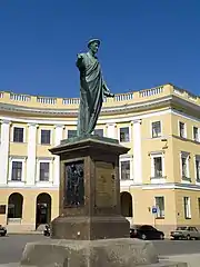 ГЕРЦОГУ ЕММАНУИЛУ ДЕ РИШЕЛЬЕ, УПРАВЛЯВШЕМУ СЪ 1803 ПО 1814 ГОДЪ НОВОРОССІЙСКИМЪ КРАЕМЪ И ПОЛОЖИВШЕМУ ОСНОВАНІЕ БЛАГОСОСТОЯНІЮ ОДЕССЫ