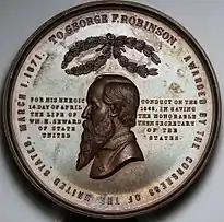 В то же время депутаты Законодательного собрания Мэна выступили с предложением наградить Робинсона за его героизм[5]. 1 марта 1871 года Конгресс США решением «16 Stat. 704» одобрил награждение Джорджа Робинсона Золотой медалью Конгресса[9] в знак признания «героического поведения» при спасении жизни госсекретаря Уильяма Сьюарда 14 апреля 1865 года»[10]. Палата представителей США выделила ему 5 тысяч долларов наличными в «память о (его) героическом поведении»[5].
