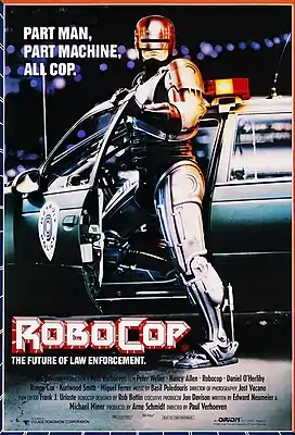 «Робокоп» — американский киберпанковый боевик[1][2] 1987 года режиссёра Пола Верховена. Сюжет фильма происходит в ближайшем будущем в преступном Детройте, Мичиган, фильм сосредоточен на полицейском, которого жестоко убивают и впоследствии воссоздают как суперчеловеческого киборга, известного как «Робокоп». В фильме представлены Питер Уэллер, Нэнси Аллен, Ронни Кокс и Кертвуд Смит.