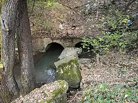 Впадение Рогачёвки (мощный поток слева) в Раменку (более слабый поток справа) | |