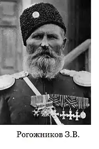 - Рогожников, Захар Васильевич — войсковой старшина (1909 г.), участник похода 1864, отличился при взятии г. Туркестан и Чимкент. Участник в походах 1865—1866 гг., Кокандском походе 1875—1876 гг[2].