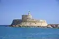 К северу от порта можно увидеть ряд весьма интересных сооружений. Первое из них — Благовещенская церковь, являющаяся митрополичным собором Родоса, который был построен итальянцами как кафедральный собор, посвящённый Святому Иоанну. За церковью следуют здания Архиепископа и Дворец Правления, архитектура которого представляет собой смешение византийского, средневекового и испанского стилей. Чуть далее к северу находится мечеть Мюрат Реиза, построенная на месте католической церкви Святого Антония. Это была постройка Сулеймана II Великолепного, которая являлась турецким кладбищем для именитых особ. На крайнем северном участке Мандраки высится здание Аквариума — одного из лучших в своём роде. Аквариум представляет фауну не только греческих, но и тропических морей, которые находятся в 25 резервуарах, расположенных наподобие запутанного лабиринта. Отсюда начинается побережье Родоса с благоустроенными пляжами, которые с мая до октября принимают множество отдыхающих.
