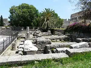 Храм бога Гелиоса предположительно был построен на территории, где в настоящее время стоит дворец Великих Магистров. В северной части Большого порта стоял храм Афродиты. Обнаруженные останки храма датируются III веком до н. э. К западу от этой территории находились судоверфи.