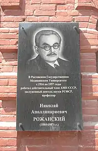 Николай Аполлинариевич Рожанский (28 июля 1884, Киев, Киевская губерния — 25 ноября 1957, Ростов-на-Дону) — русский и советский фармаколог, физиолог, академик АМН СССР (1945-57), родной брат физика Дмитрия Рожанского.