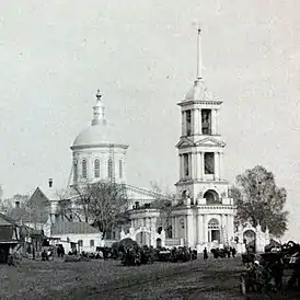 Храм в начале XX века имел длину 25 саженей (53 м), ширину 8 саженей и 1 аршин (18 м) и высоту — 5 саженей (10,5 м)[1][3][6]. Колокольня была в три с половиной яруса, а её высота до карниза достигала 14 саженей (30 м)[1]. Церковь венчал купол с 12 окнами[3].