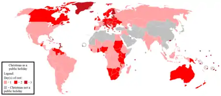 В большинстве стран мира Рождество является государственным праздником, либо этот день объявлен выходным. Это подвергается критике со стороны некоторых представителей других вероисповеданий и атеистов как нарушение права на свободу совести и отделения религии от государства. При этом в странах, где Рождество не является общенациональным праздником, в качестве государственных праздников, как правило, установлены праздники других религий (Марокко) или жители лишены права на свободу вероисповедания и установлен государственный атеизм по коммунистическому образцу (Китай).