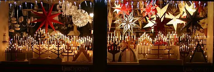 Взрослые используют ставшие популярными усечённые четырёхрожковые подсвечники, в каждое из четырёх воскресений «адвента» зажигая по одной дополнительной лиловой свече. Свече не дают сгореть до конца, а гасят — до следующего воскресенья, когда зажигают уже две свечи и т. д. К празднику Рождества на окнах финских домов горело все четыре свечи. Использование натуральных свечей в настоящее время почти не практикуют и большинство горожан зажигают на подоконниках электрические семисвечники (фин. adventtikynttelikkö), подвесные звёзды и лампы[16].