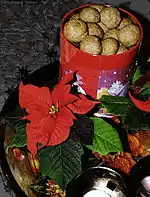 | Рождественский стол | Липеякала (фин. lipeäkala) | Рисовая каша с миндалём (фин. riisipuuroa) | Запечённый свиной окорок (фин. kinkku) |