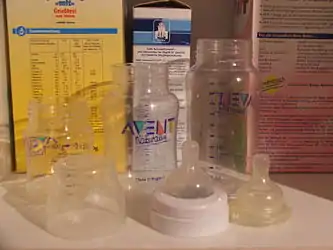 Для изготовления обычно используется стекло и поликарбонат. Недостатки стеклянных бутылочек заключаются в том, что они тяжёлые и хрупкие. Эти факторы становятся особенно значительными, когда ребёнок начинает держать бутылку сам. Бутылочки из поликарбоната, согласно исследованиям, небезопасны для малышей: в процессе стерилизации при термической обработке или при активном мытье такие бутылочки начинают выделять бисфенол А — ядовитое вещество, отрицательно воздействующее на нервную и мочеполовую системы[2]. Именно поэтому, например, в Канаде использование поликарбонатных бутылочек запрещено[2].