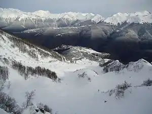 Спортивные горнолыжные трассы расположены на северных склонах хребта Аибга и представляет собой единый объект для проведения соревнований по всем горнолыжным дисциплинам: скоростной спуск, слалом, супер-гигант, слалом-гигант.
