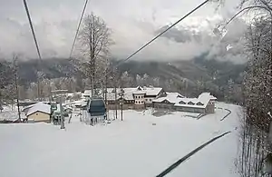 На нижних отметках курорта, откуда начинаются канатные дороги расположены: