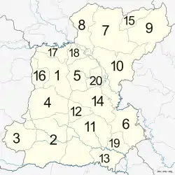 Подразделяется на 20 района (ампхе), которые состоят из 193 подрайонов (тамбон) и 2 311 поселений (мубан).
