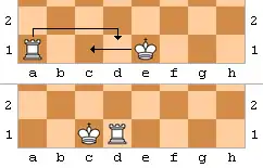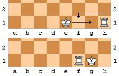 - Сначала король делает ход на две клетки в сторону ладьи.