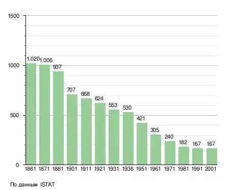 Население составляет 183 человека (2008 г.), плотность населения составляет 9 чел./км². Занимает площадь 21 км². Почтовый индекс — 15060. Телефонный код — 0143.
