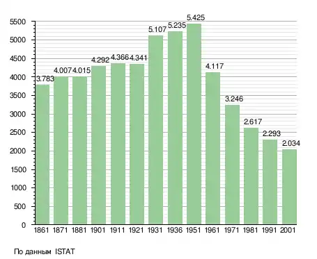 Население составляет 2026 человек (2008 г.), плотность населения составляет 28 чел./км². Занимает площадь 72 км². Почтовый индекс — 71020. Телефонный код — 0885.