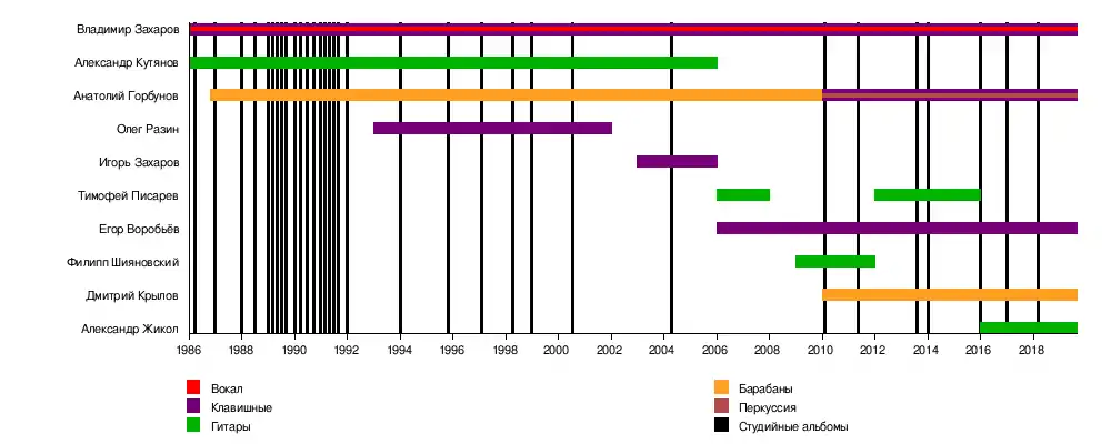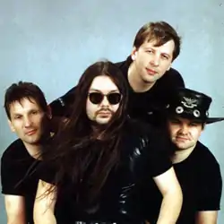![]() Группа «Рок-Острова» в 1993—2002 гг. (слева направо): Анатолий Горбунов, Владимир Захаров, Олег Разин, Александр Кутянов | |