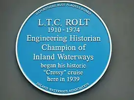 ![]() Синяя табличка на верфи, откуда Ролт начал своё путешествие в 1939 году | |