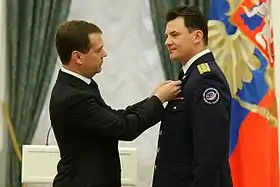 - 12 апреля 2010 года Президент Российской Федерации Дмитрий Анатольевич Медведев подписал Указ о присвоении звания Героя Российской Федерации и почётного звания «Лётчик-космонавт Российской Федерации» космонавту-испытателю — командиру группы отряда космонавтов федерального государственного бюджетного учреждения «Научно-исследовательский испытательный центр подготовки космонавтов имени Ю. А. Гагарина» Р. Ю. Романенко. Звания Роману Романенко присвоены за мужество и героизм, проявленные при осуществлении космического полёта на Международной космической станции[14];