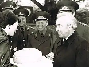 ![]() Г. В. Романов (справа) и А. Д. Лизичев в 6-й гв. омсбр. Берлин, 1983 год | |