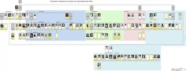 | 28 июля 1935 | Романовские-Кутузовы | Графиня Марина Сергеевна Голенищева-Кутузова (1912—1969) — 1-я супруга Дмитрий Александрович | Брак расторгнут в 1947 года. Род существует в лице единственной дочери от этого брака Надежды Дмитриевны (род. 1933; в браке с 1952 года — Ален). |