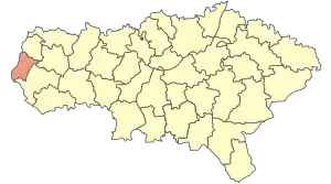 Самый западный район области. Расположен в степной зоне в пределах Окско-Донской равнины в бассейне реки Карай, притока Хопра. Богатством района являются высокопродуктивные чернозёмные почвы.