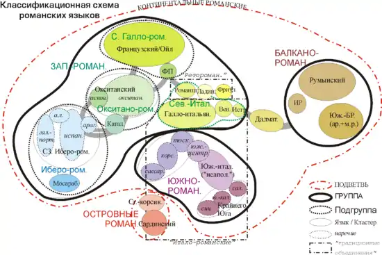 | западно-романская и балкано-романская подгруппы. | |