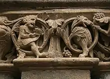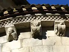 Консоли карниза апсидного выступа в аббатстве д'Артуа, Ланды, Франция. Маленькие фигурки изображают страсть, несдержанность и варварских обезьян, символ человеческой греховности.
