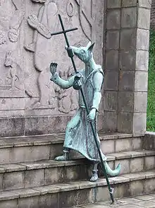 - Памятник установлен в связи с тем, что этот город упоминается во фламандской версии истории о Лисе.