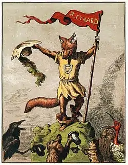 | Персонажи | Лис Ренар/Рейнеке, волк Изенгрим, медведь Брюн, кот Тибер/Гинце, лев Нобль, барсук Гримбарт, лиса Эрмелина, баран Бэллин, заяц Куар/Лямпе |