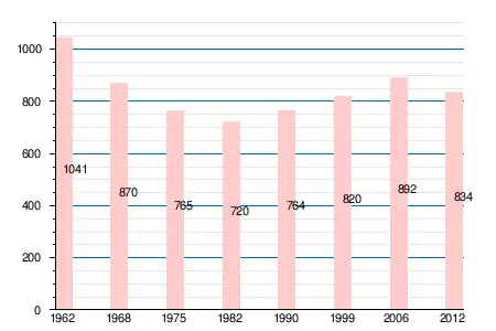 | 1962 | 1968 | 1975 | 1982 | 1990 | 1999 | 2006 | 2008 | 2011 | 2012 |