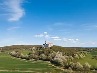 А в 1736 году в замок переехал со своими сторонникам граф Николай фон Цинцендорф[1]. Этот богослов и гернгуттеров пользовался большим авторитетом среди сторонников движения, называемого часто Моравские братья или гернгуттеры (граф сам стоял у истоков этого сообщества). Вскоре замок стал очень популярным местом паломничества для протестантов. Комплекс вскоре уже не мог вмещать всех вновь прибывающих. И через некоторое время протестанты основали на холме неподалёку собственное поселение, названное ими Геррнхааг. С 1750 года многие из этих людей начали уезжать в Америку.
