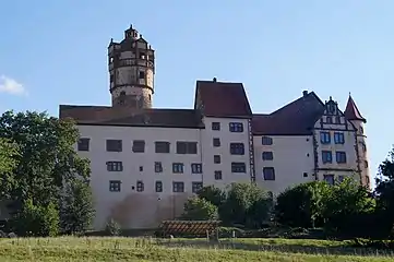 В 1572 году состоялась свадьба графа Генриха фон Изенбург-Роннебург и графини Элизабет фон Глейхен-Тонна. После этого стало очевидно, что прежние жилые здания больше не способны соответствовать потребностям представительской резиденции, где требовалось иметь много помещений самого разного назначения. Поэтому вскоре началось строительство нового просторного здания, которые часто именуют Нойекеменате (Neue Kemenate) в северо-восточной части замка.