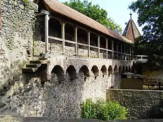 Арочные ворота при входе в форбург появились около 1540 года. Для прохода в основной замок требовалось преодолеть несколько ворот.