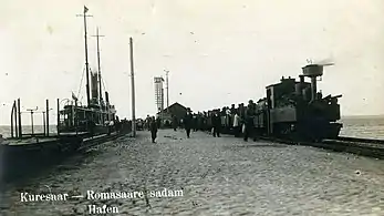 В 1917—1918 годах немецкая оккупационная власть построила на Сааремаа железную дорогу шириной 600 мм, которая начиналась у порта Роомассааре и шла через Курессаре до деревни Рёэса (Röösa)[3]. Дорожную насыпь успели возвести до Ориссааре. В 1922 году железную дорогу разрушили, оставив только трёхкилометровый отрезок от Роомассааре до Курессааре. В 1920–1930-х годах порт соединили с городом Курессааре узкоколейной железной дорогой, которая использовалась до осени 1940 года[3]. К этому времени железная дорога и железнодорожные составы были в настолько плохом состоянии, что перевозить людей и товары стало опасно. Было необходимо полное реновирование портового и железнодорожного хозяйства[3].