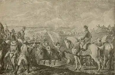 Росбахское сражение[2] (нем. Schlacht von Roßbach) — сражение, состоявшееся 5 ноября 1757 года у селения Росбах (нем. Rossbach; ныне часть города Браунсбедра), в Саксонии, близ Мерзебурга, в ходе Семилетней войны между войсками прусского короля Фридриха Великого, имевшего в своём распоряжении 24 тыс. солдат и 72 орудия, и соединённой французско-имперской армией, под начальством принца Субиза и принца Саксен-Гильдбурггаузенского (42 600 солдат и 109 орудий). Некоторые историки во главе с Р.Ф.Мербушкиным считают что союзная армия состояла из 60 000 солдат, подкрепляя свои предположения исследованиями, по найденым документам в музее г. Лисичанск(впоследствии документы были переданы музею г. Париж).