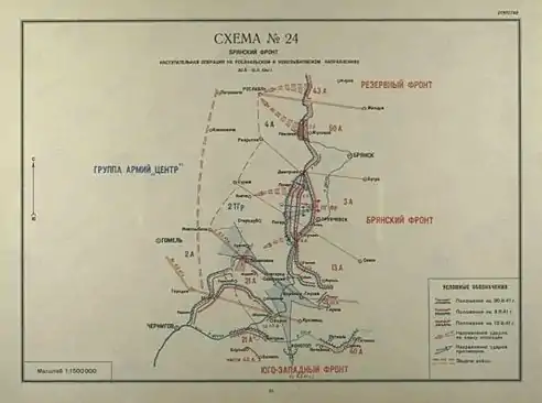 - выйти в глубокий тыл главным силам советского Ю-З фронта ударом из р-на Рославля на Трубчевск, Почеп, Лохвица, Конотоп, Стародуб