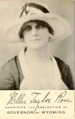 ![]() Нелли Тейло Росс во время выборов на пост губернатора штата Вайоминг. 1925 г. | |